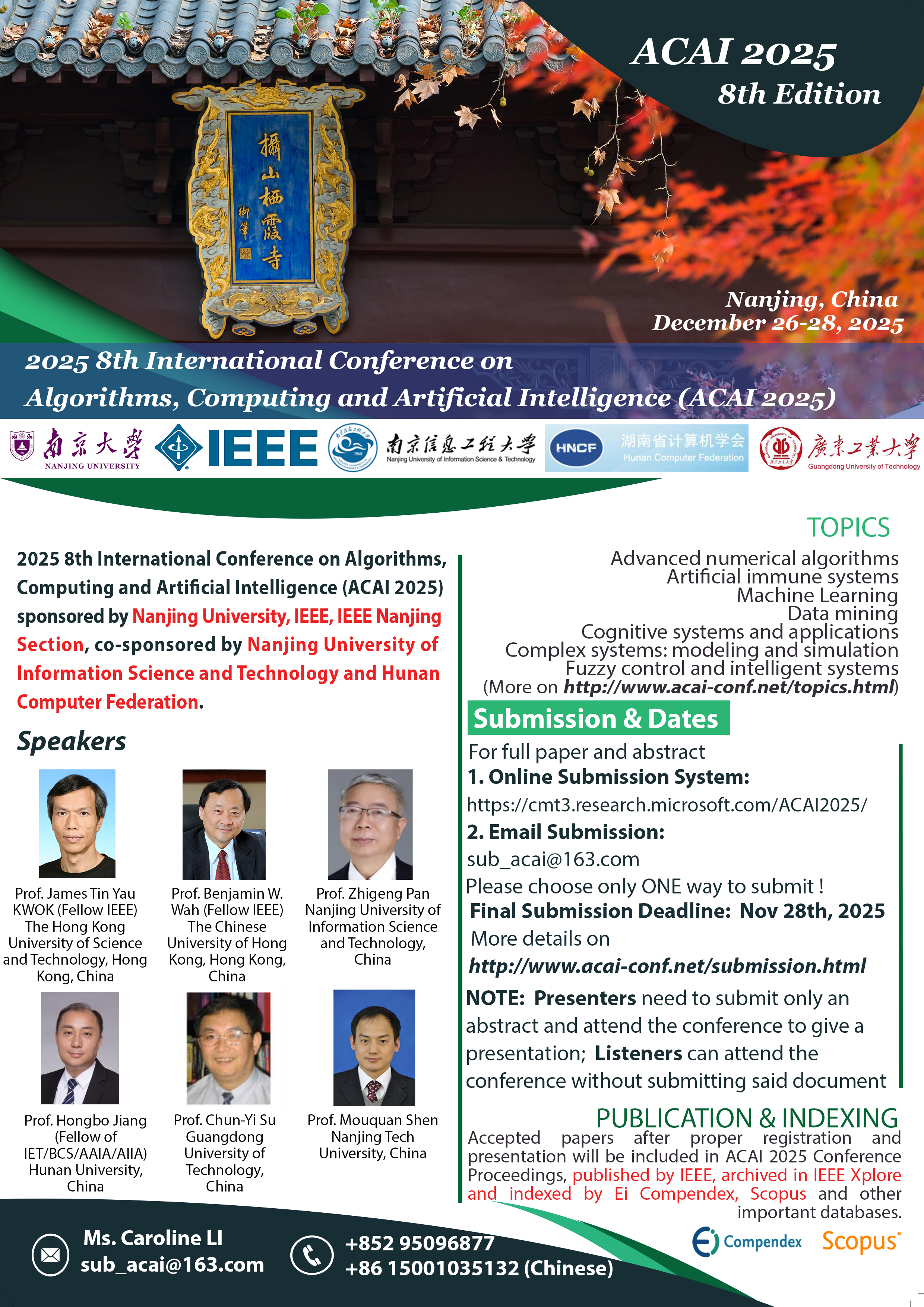 2025 8th International Conference on Algorithms, Computing and Artificial Intelligence (ACAI 2025) sponsored by Nanjing University, IEEE, IEEE Nanjing Section, co-sponsored by Nanjing University of Information Science and Technology and Hunan Computer Federation